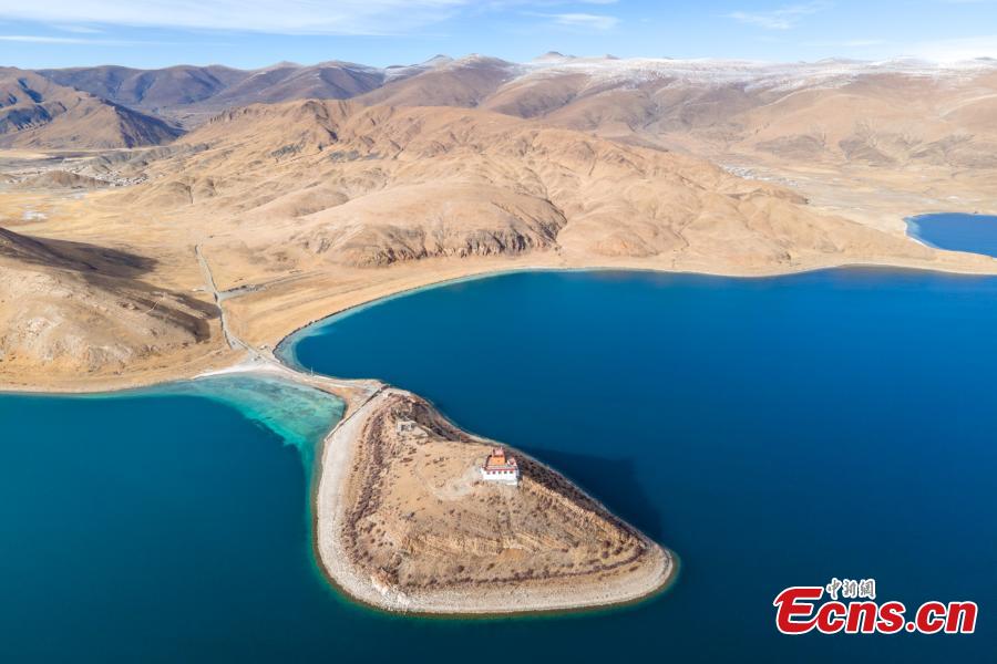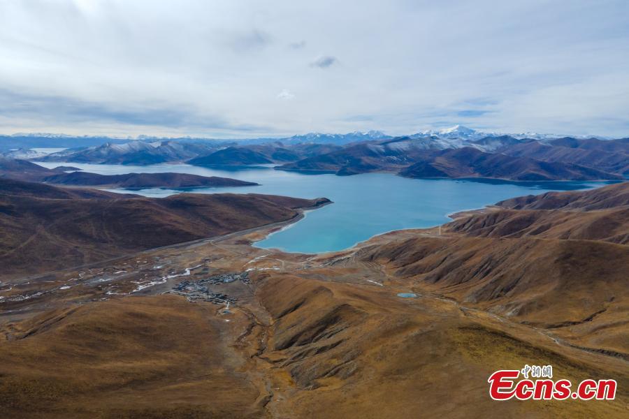 Photo taken on Dec. 28, 2021 shows charming winter view of Yamdrok Lake, one of the three holy lakes in SW China’s Tibet Autonomous Region. (China News Service/Jiang Feibo)