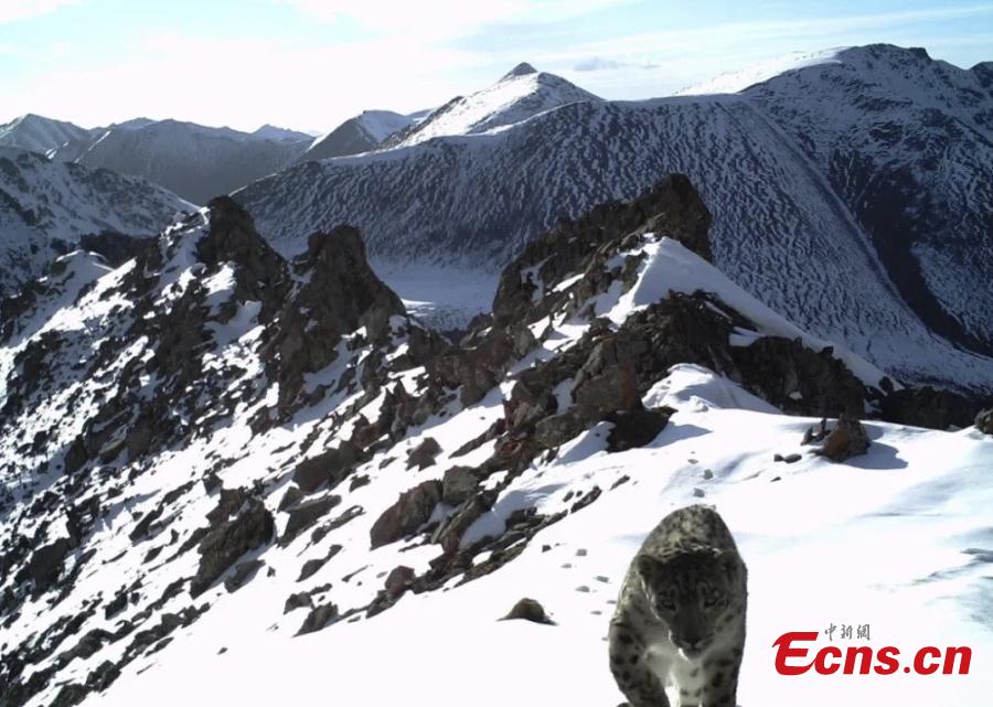 Image provided by the authority of Datong Beichuan River Source Area National Nature Reserve demonstrates a snow leopard captured by an infrared camera in the reserve in northwest China's Qinghai Province.