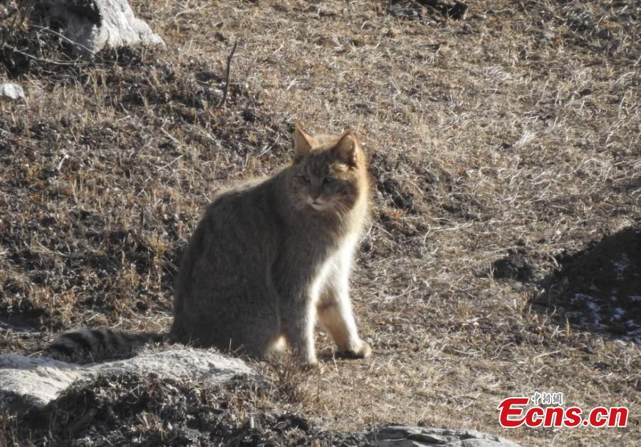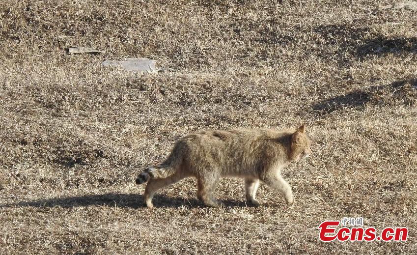 Image provided by the authority of Datong Beichuan River Source Area National Nature Reserve demonstrates a Felis bieti, or wildcat, captured by an infrared camera in the reserve in northwest China's Qinghai Province.