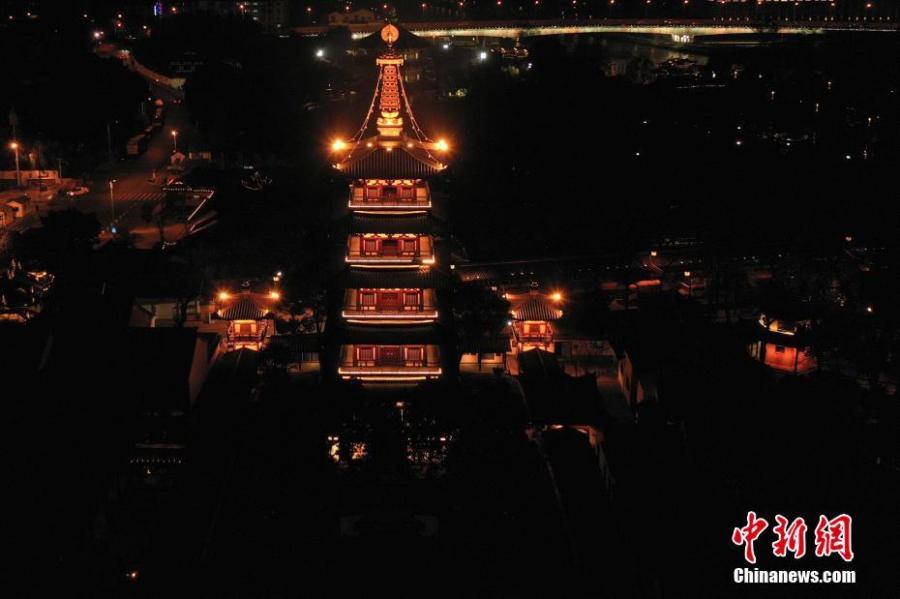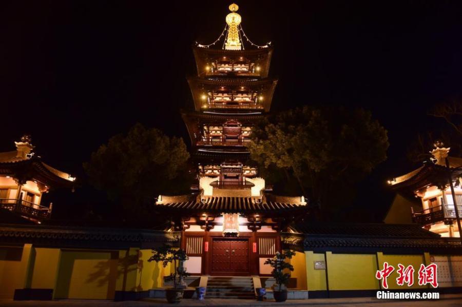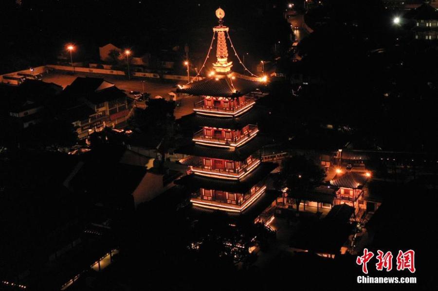 A New Year's Eve bell-ringing and lighting ceremony is held to welcome the upcoming fresh start of 2022 at the 1,500-year-old Hanshan Temple in Suzhou, east China's Jiangsu Province, Dec. 30, 2021. (Photo/IC)