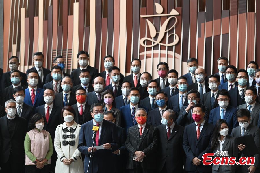 New-term members of the 7the Legislative Council of the Hong Kong Special Administrative Region take group photos after the swear-in ceremony at the LegCo Complex in Hong Kong, Jan 3, 2022. (Photo: China News Service/Li Zhihua)