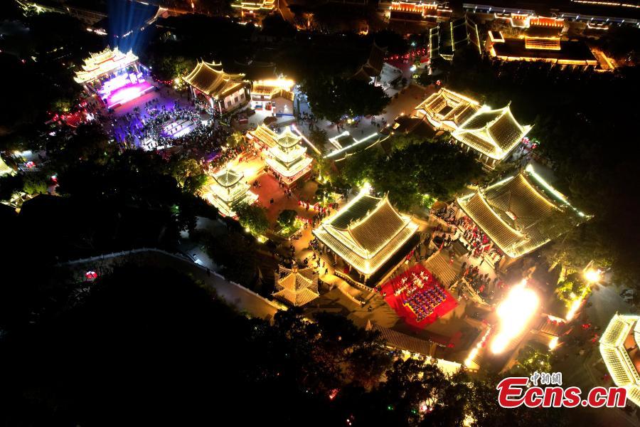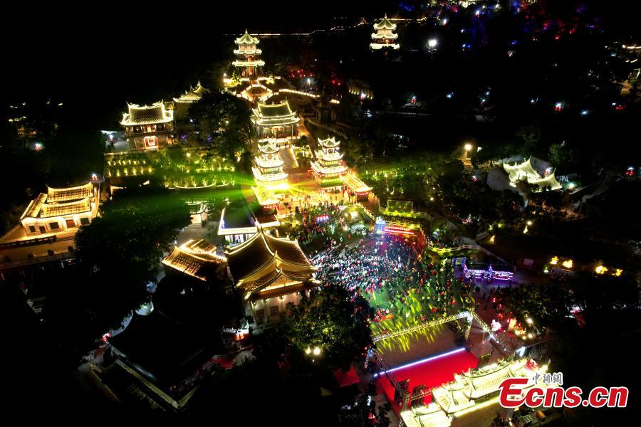 The night view of the Mazu Ancestral Temple on the Meizhou Island, Putian, east China's Fujian Province, Jan. 3, 2022. (Photo: China News Service/Wang Dongming)