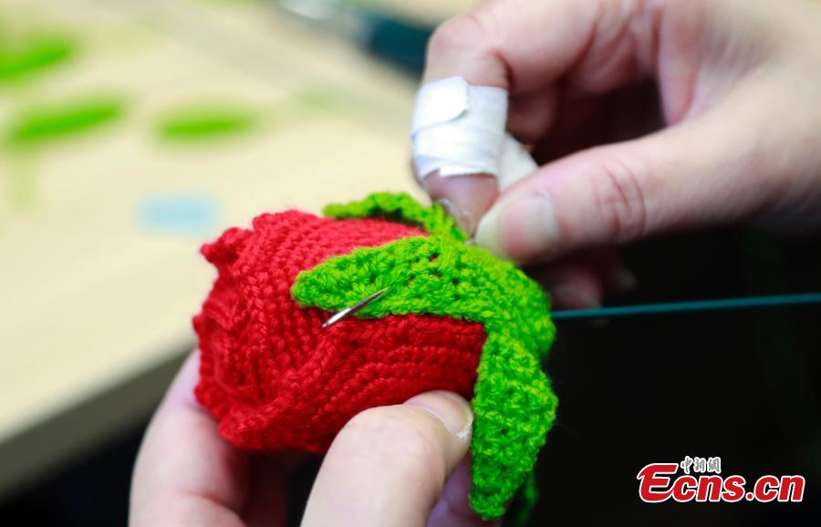 The average age of these Shanghai aunties is over 60. They will knit 2,400 cashmere roses in less than three months. It usually takes eight hours for one aunty to crochet a cashmere flower.