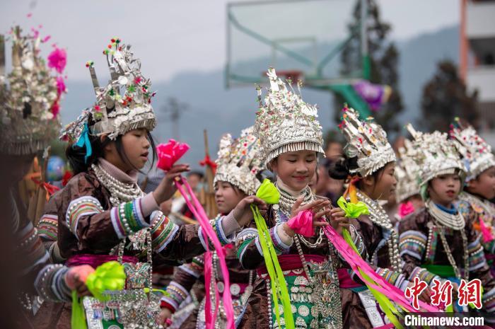 Students in ethnic costumes at Congjiang county, southwest China's Guizhou province. (Photo: China News service/Wu Dejun)