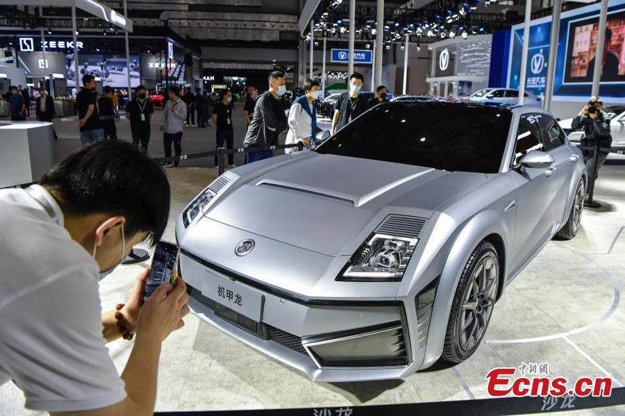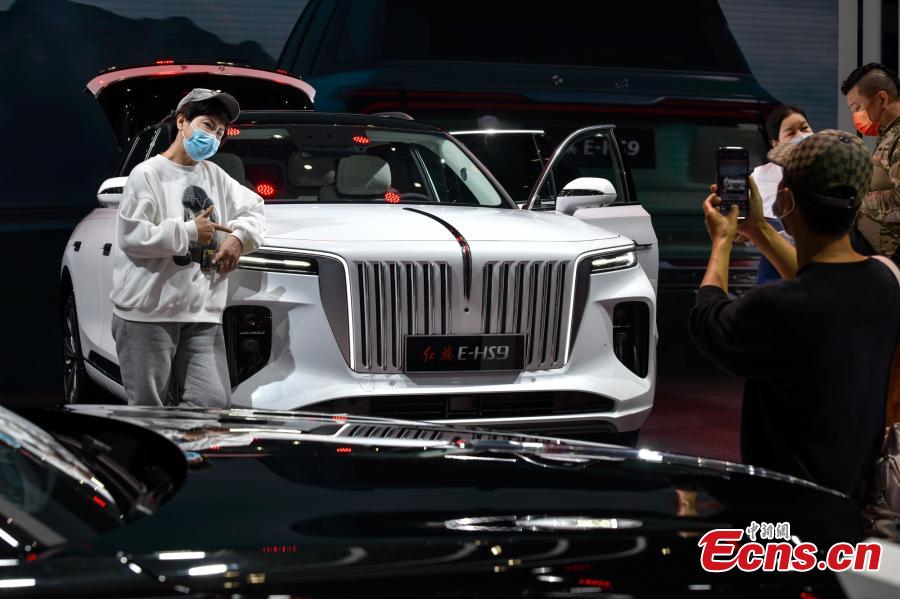 A new energy vehicle is on display at the 2022 Haikou International New Energy Vehicle & Connected Mobility Show in south China's Hainan Province, Jan. 6, 2022. (Photo: China News service/Luo Yunfei)