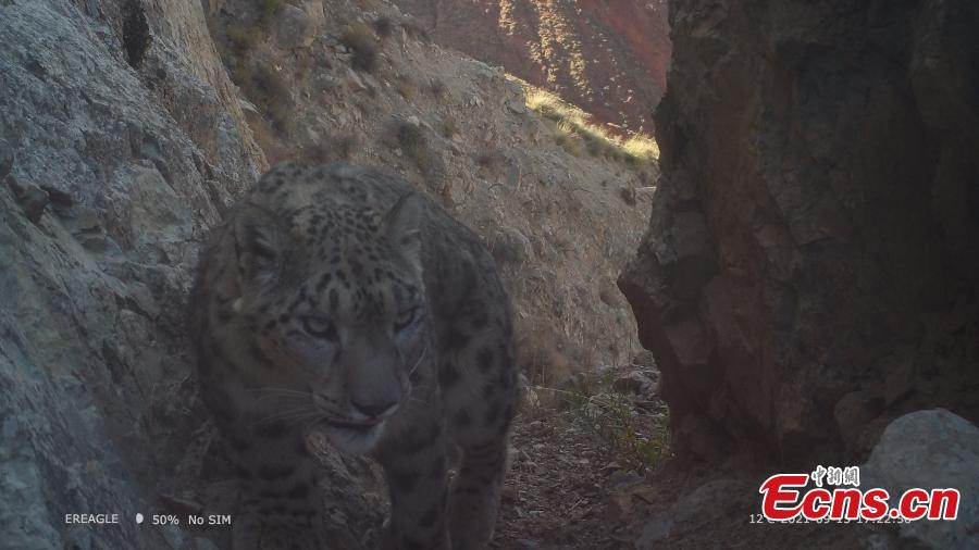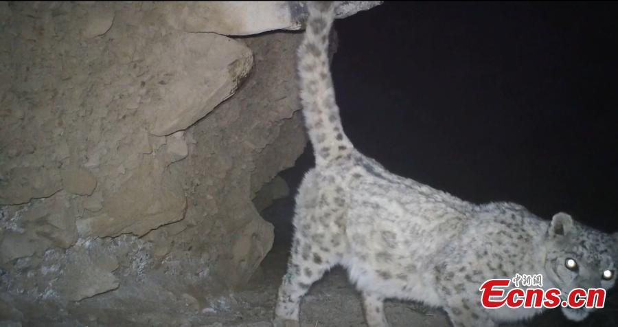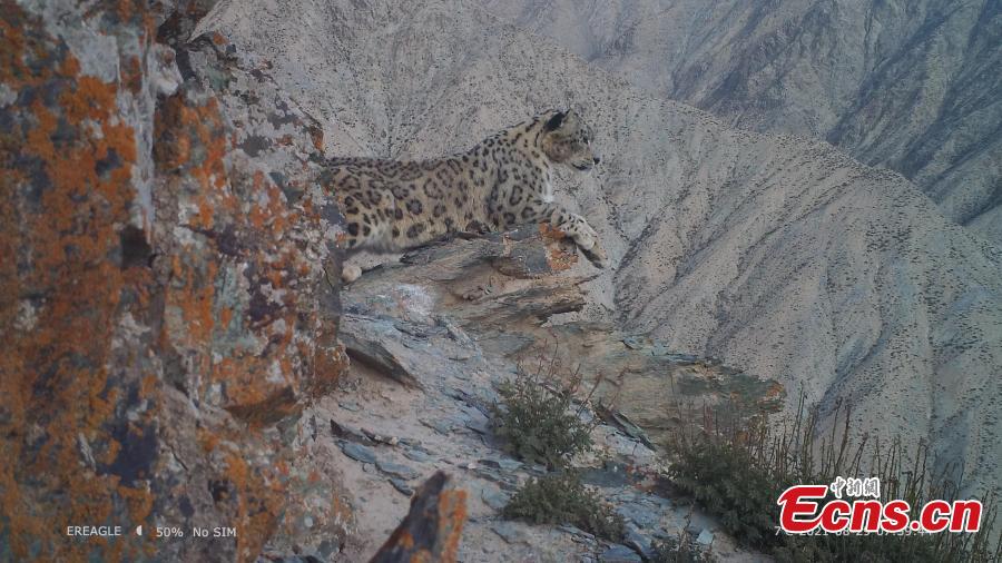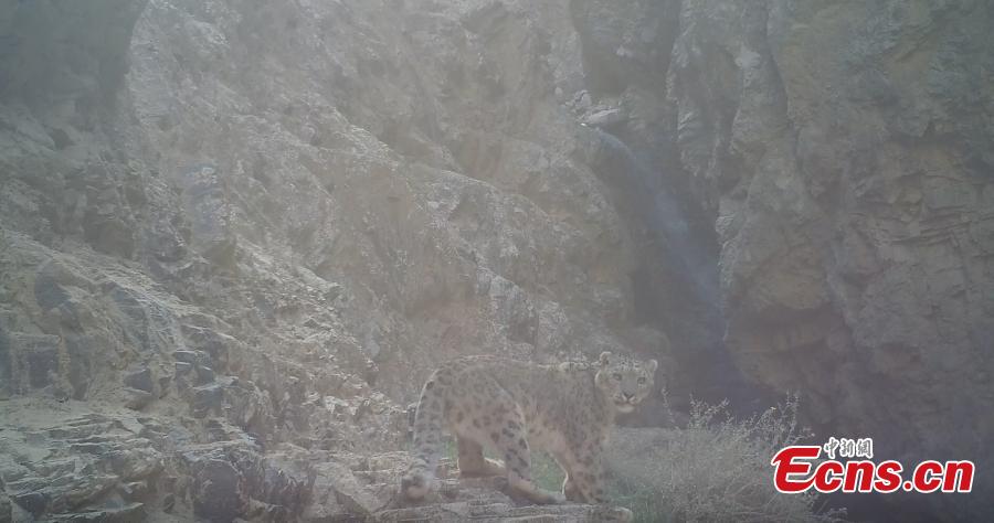 Photo shows a snow leopard in Qilian Mountains area in Qiuquan City, northwest China's Gansu Province. (Photo provided to China News Service by the Convergence Media Center of Aksay Kazakh Autonomous County)
