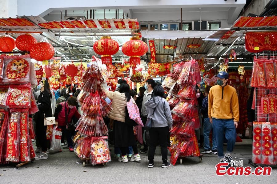 Citizens in Hong Kong Special Administrative Region (HKSAR) buy decorations such as couplets and lanterns for the upcoming Chinese New Year, the year of the tiger. (Photo: China News Service/Li Zhihua)