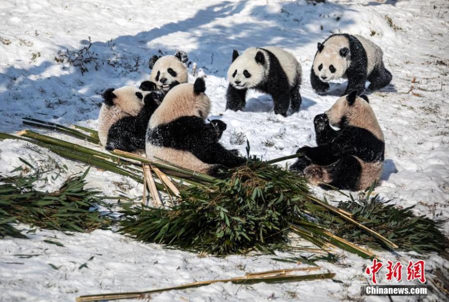 The County in northwestern Sichuan, where the Shenshuping Base of China Conservation and Research Center for the Giant Panda is located, was covered by snow on Thursday.