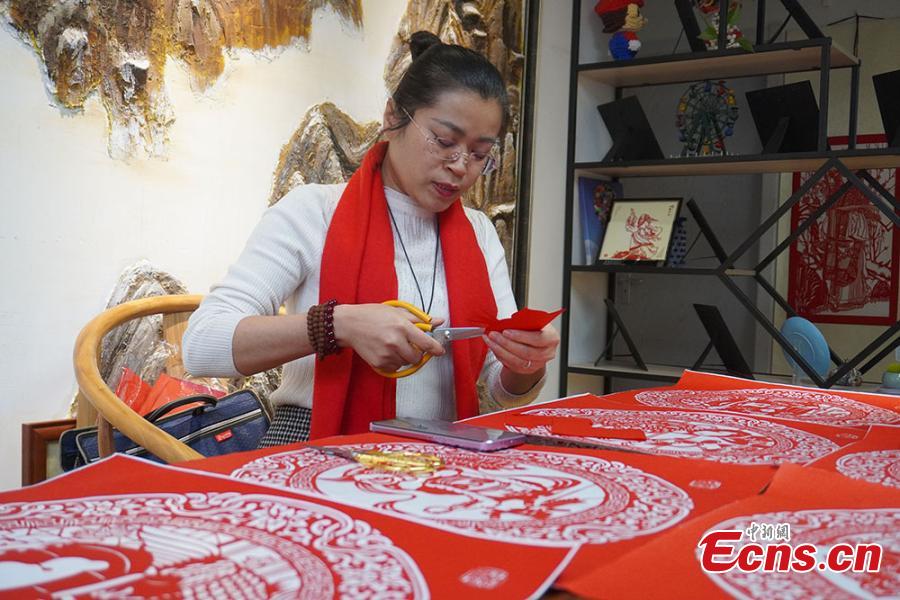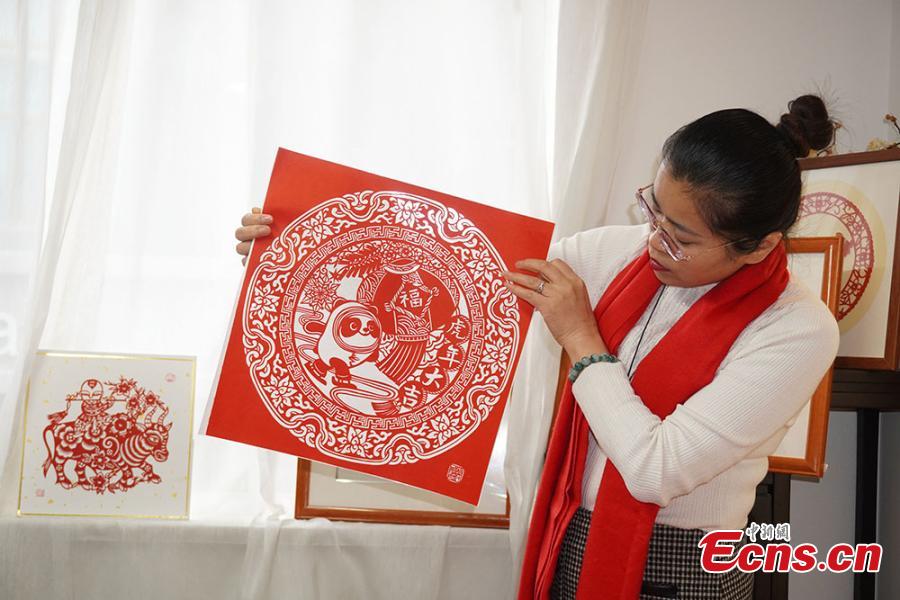 Yang Shuzhen, an master of paper-cutting in Lanzhou, capital of China’s Gansu Province, shows her work on January 13, 2022. (Photo: China News Service/Jiumeidanzeng)