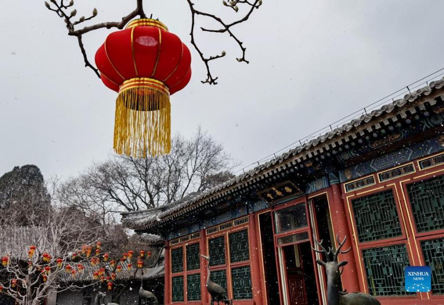 Photo taken on Jan. 20, 2022 shows the snow scenery of the Summer Palace in Beijing, capital of China, (Xinhua/Ren Zhenglai)