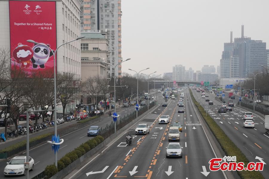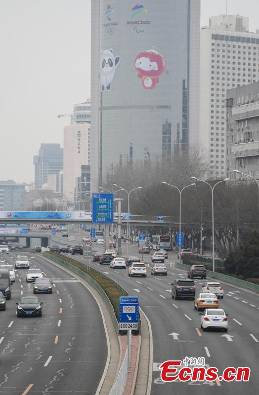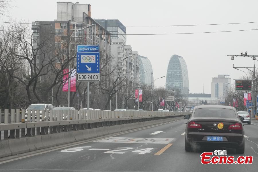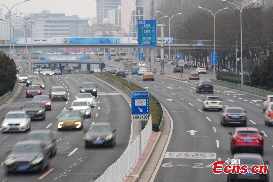 Photo taken on Jan.21, 2022 shows a traffic lane reserved for the exclusive use of Beijing 2022. (Photo: China News Service/Cui Nan)