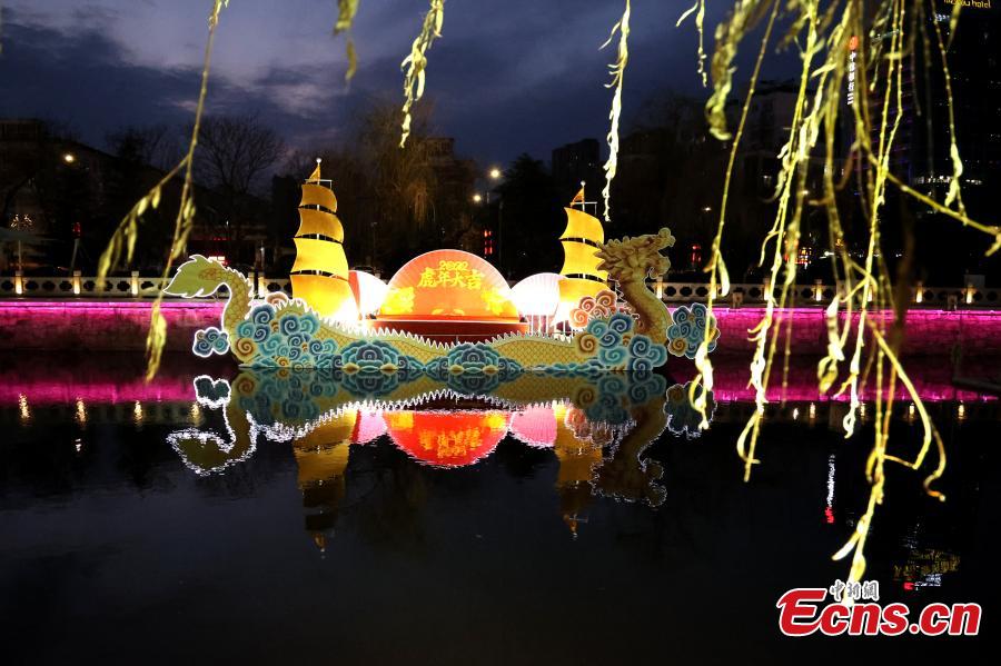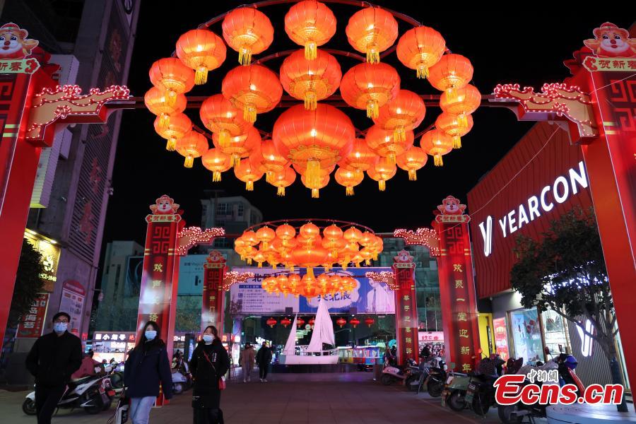 As Chinese New Year approaches, people enjoy the visual feast created by the colorful lanterns in Lianyungang, east China's Jiangsu Province, Jan. 27, 2022. (Photo provided to China News Service by Geng Yuhe)