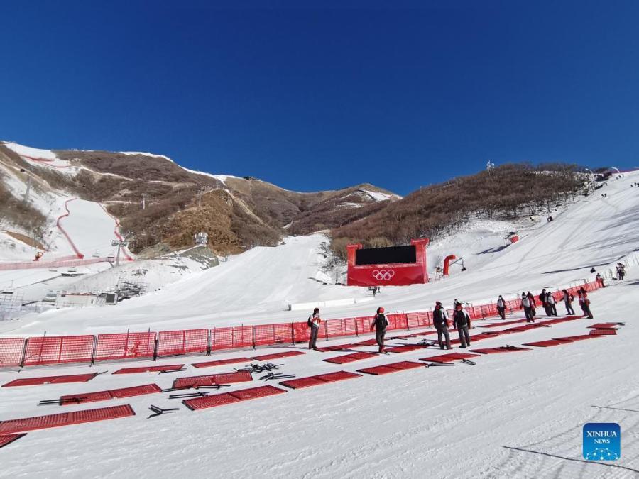 Photo taken with a mobile phone shows a view of the Yanqing competition zone for the Beijing 2022 Winter Olympics in Yanqing District of Beijing, capital of China, Jan. 28, 2022. With one week to go before the opening of the 2022 Olympic Winter Games, Beijing will become the first city to host both summer and winter editions of the Olympic Games. (Xinhua/Zhang Chenlin)
