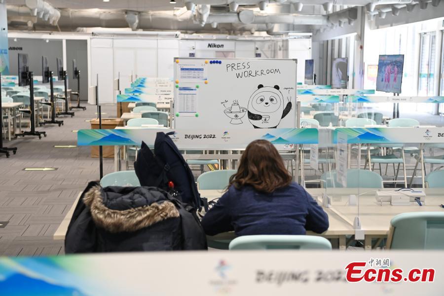 A reporter works at the Main Media Center for the 2022 Olympic and Paralympic Winter Games in Beijing, capital of China, Jan 28, 2022. (Photo: China News Service/Mao Jianjun)