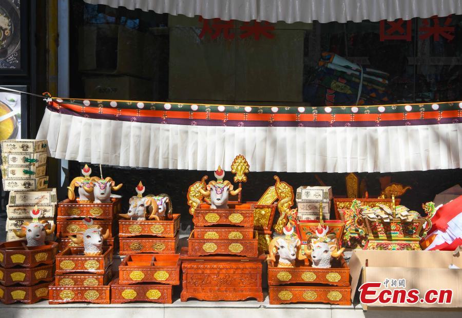 Preparations including Qiema box are displayed in Lhasa, capital of southwest China's Tibet autonomous region, Jan. 29, 2022. (Photo/China News Service)