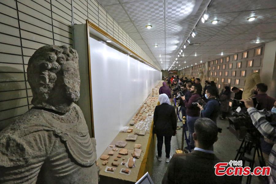Stone relics are exhibited in the Iraq Museum at Baghdad, Iraq, Feb. 8 (local time), 2022. (Photo/Agencies)