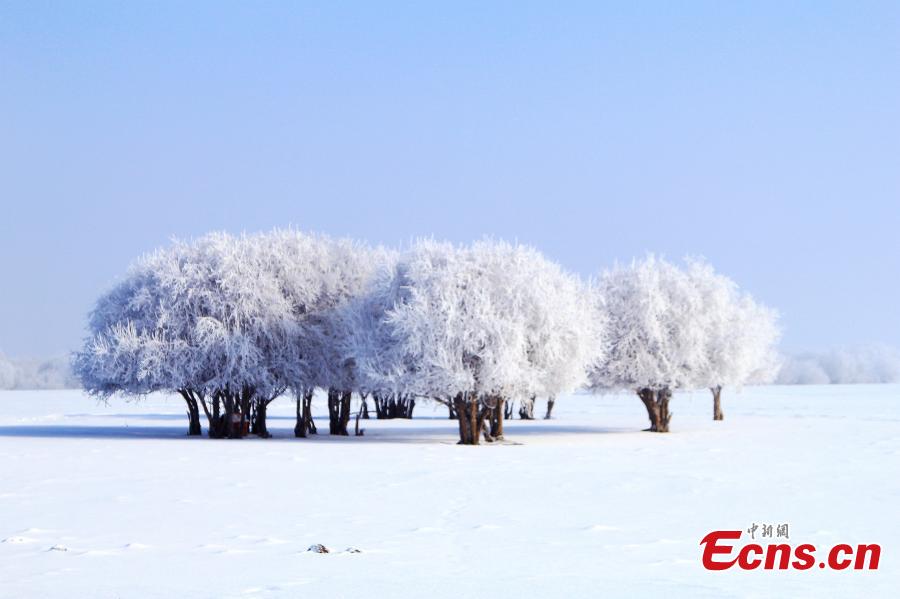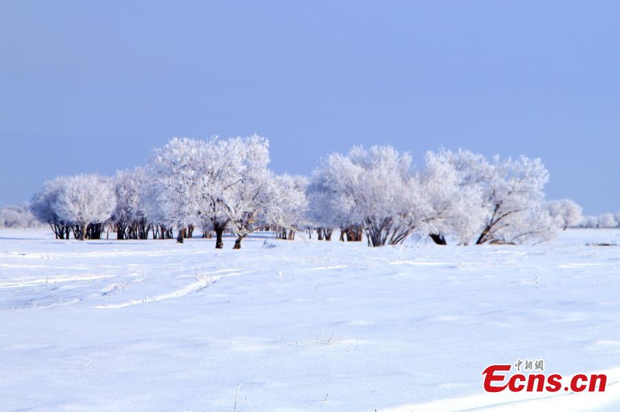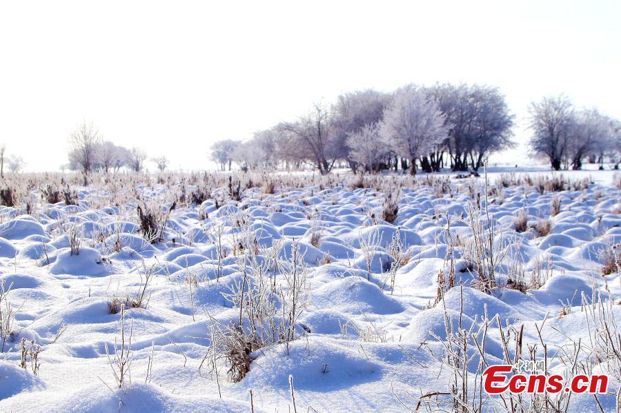 This photo shows the snow wonderland with rimes on the trees inside the Ergun Wetlands in Ergun city, Hulunbuir, north China's Inner Mongolia Autonomous Region. (Photo provided by Jiang Lichun)