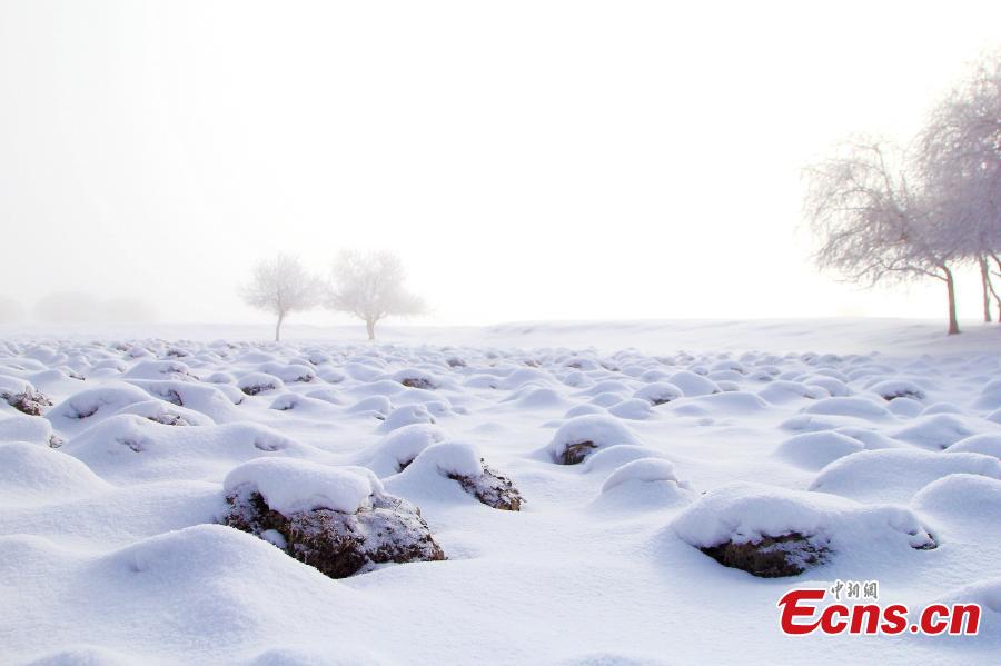 This photo shows the snow wonderland with rimes on the trees inside the Ergun Wetlands in Ergun city, Hulunbuir, north China’s Inner Mongolia Autonomous Region. (Photo provided by Jiang Lichun)
