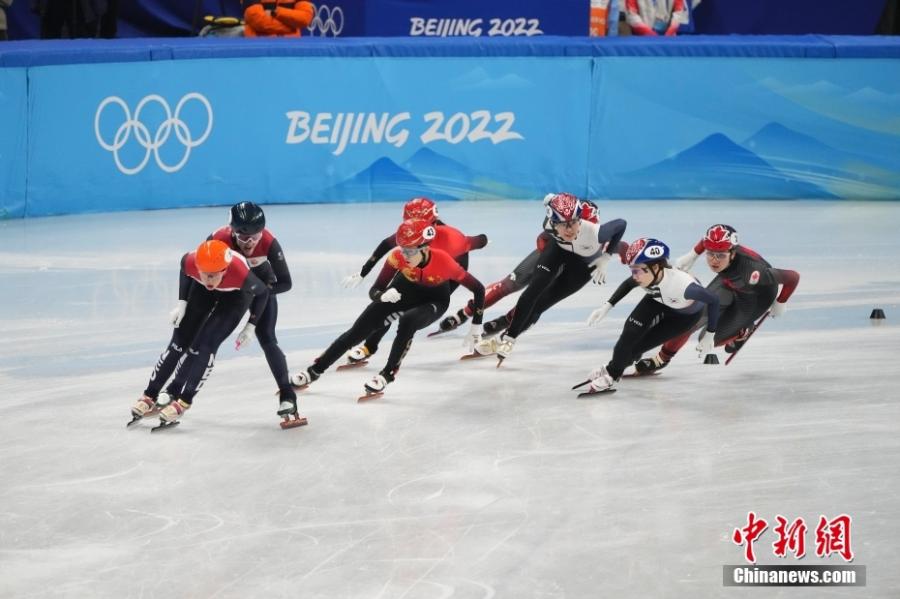 Team China competes during the women's 3,000m relay final of short track speed skating at Capital Indoor Stadium in Beijing, capital of China, Feb. 13, 2022. (Photo: China News Service/Mao Jianjun)