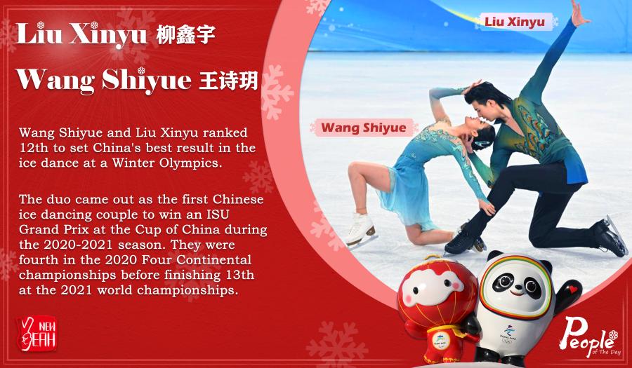 Wang Shiyue and Liu Xinyu ranked 12th to set China's best result in the ice dance at a Winter Olympics. The duo came out as the first Chinese ice dancing couple to win an ISU Grand Prix at the Cup of China during the 2020-2021 season. They were fourth in the 2020 Four Continental championships before finishing 13th at the 2021 world championships.