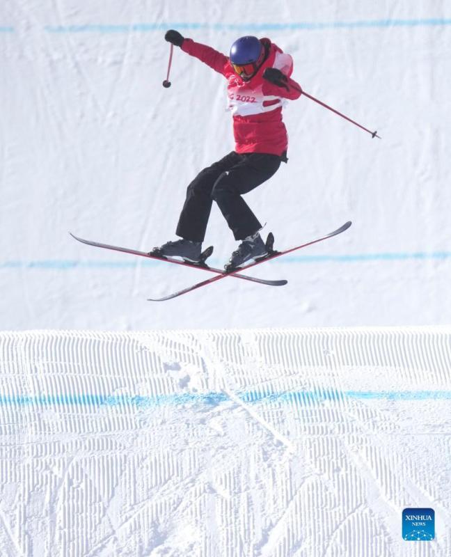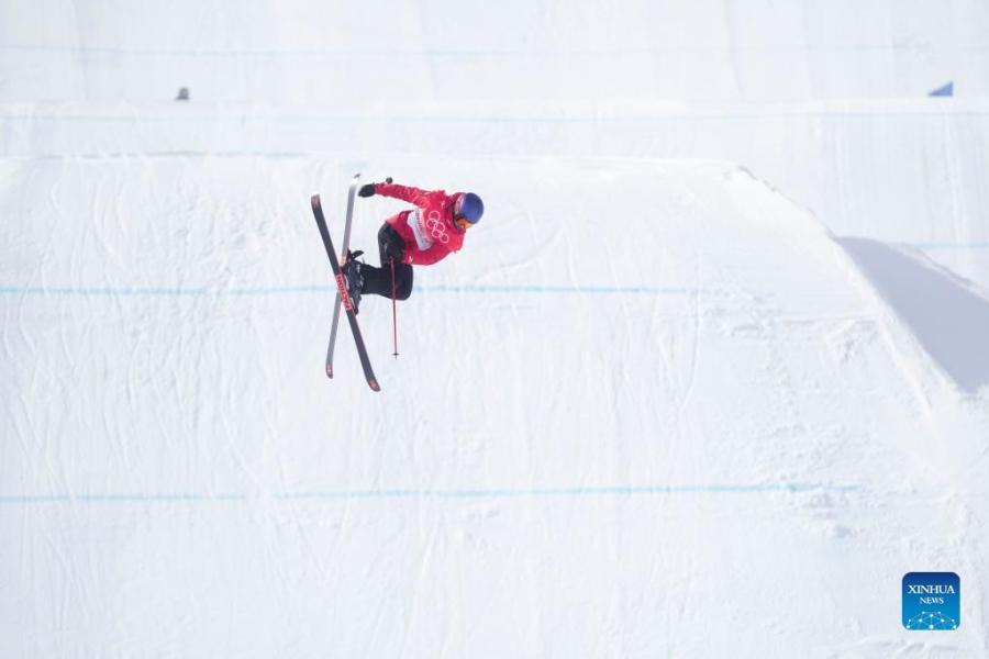 Gu Ailing of China competes during the freestyle skiing women's freeski slopestyle final of Beijing 2022 Winter Olympics at Genting Snow Park in Zhangjiakou, north China's Hebei Province, Feb. 15, 2022. (Xinhua/Wang Haofei)