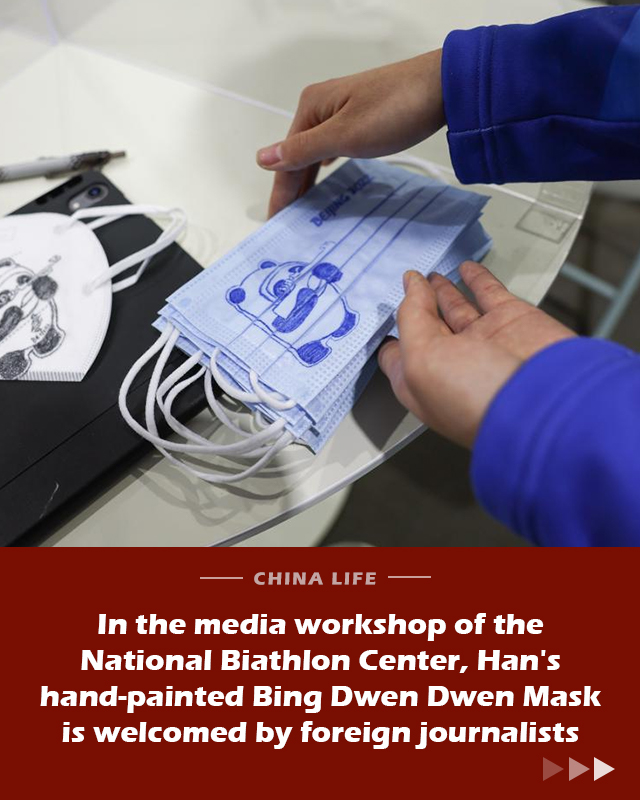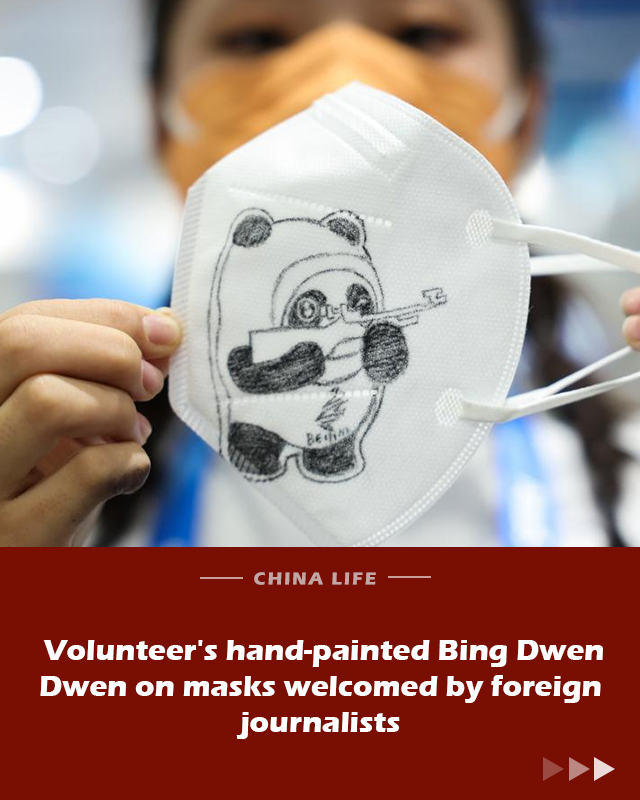 China Life: Volunteer's hand-painted Bing Dwen Dwen on masks welcomed by foreign journalists