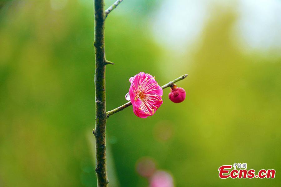 Plum blossoms are seen in full bloom in snow at a park in Anqing, Anhui Province, Feb. 17, 2022. Blossoming plum blossoms were covered by snowflake, forming a magical winter scene. (Photo: China News Service/Wu Junqi)