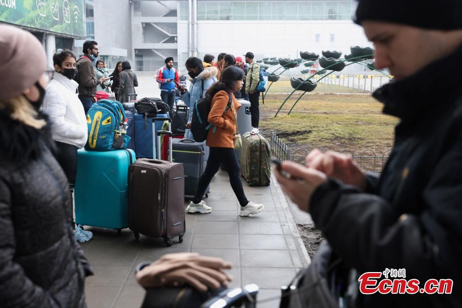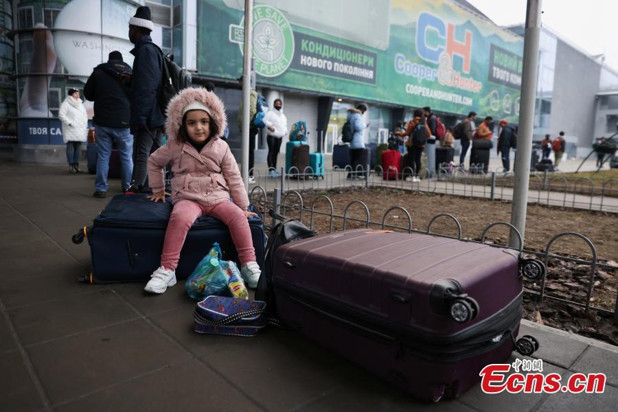 People carrying luggage flock to airport in Kyiv, Ukraine, Feb. 24, 2022. (Photo/Agencies)