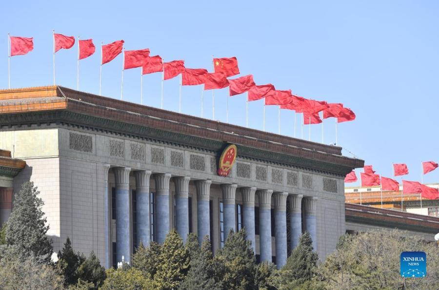 Photo taken on March 4, 2022 shows the Great Hall of the People in Beijing, capital of China. The fifth session of the 13th National Committee of the Chinese People's Political Consultative Conference (CPPCC) will open Friday afternoon. (Xinhua/Li Xin)