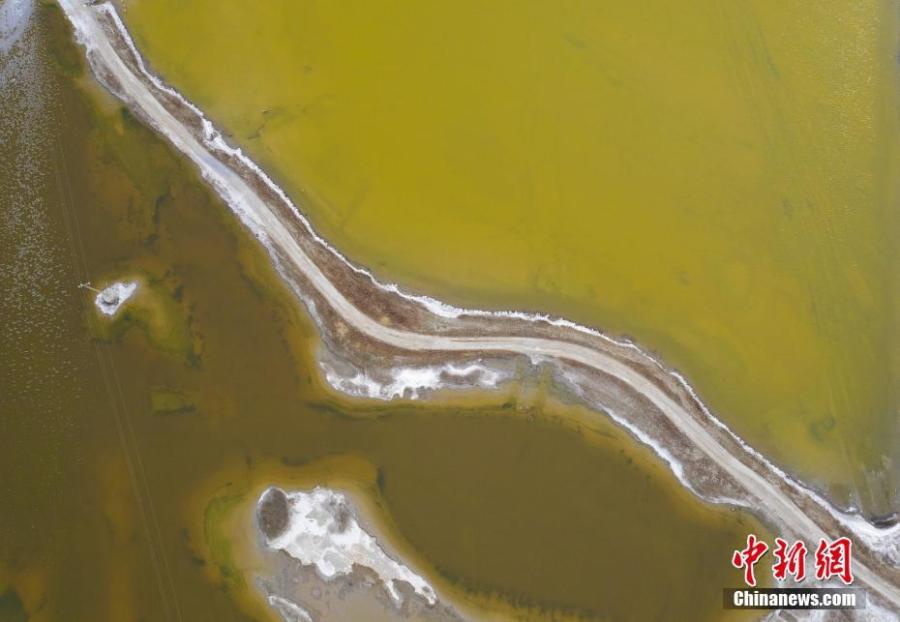 Yuncheng Salt Lake has turned to a huge painter's palette as temperatures rise. Yuncheng Salt Lake is one of the three largest sodium sulfate lakes in the world. It is also known as the 'Dead Sea of China' due to its salt content being like that of the Dead Sea in the Middle East.