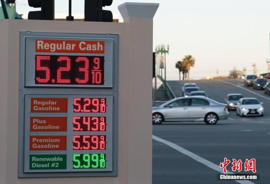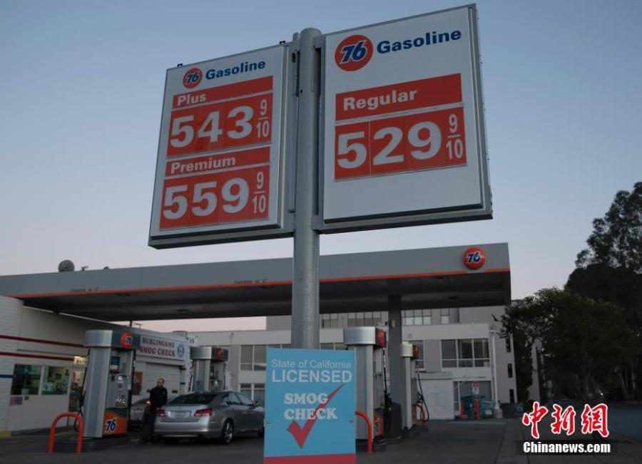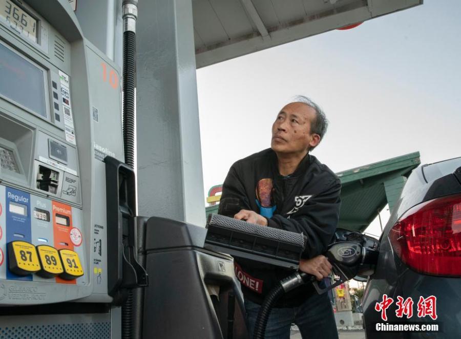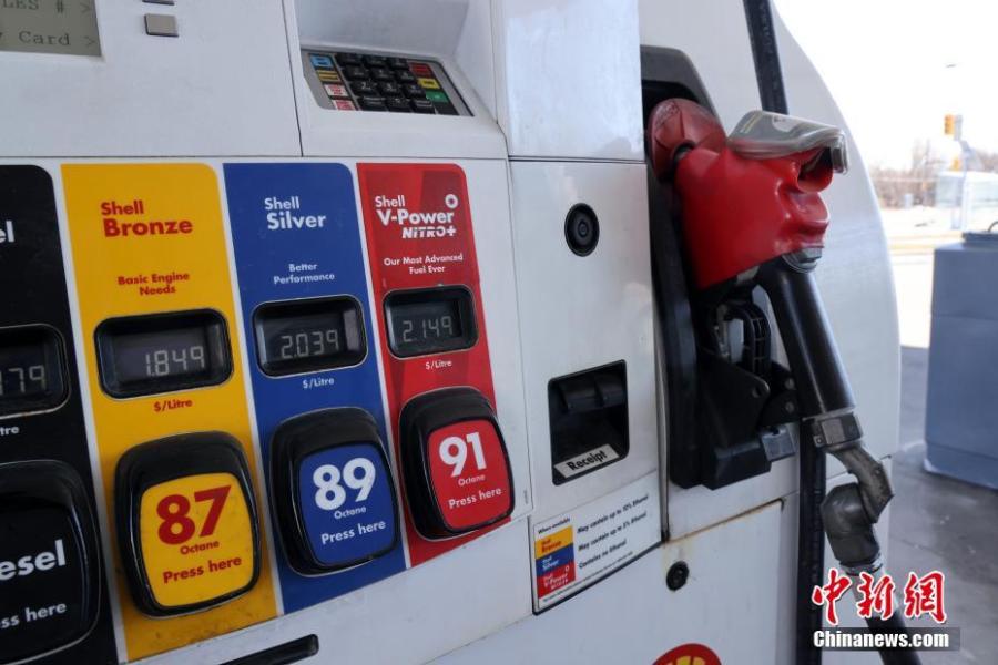 A truck waits for fueling at a gas station in Toronto, Canada, March 6, 2022. (Photo: China News Service/Yu Ruidong)