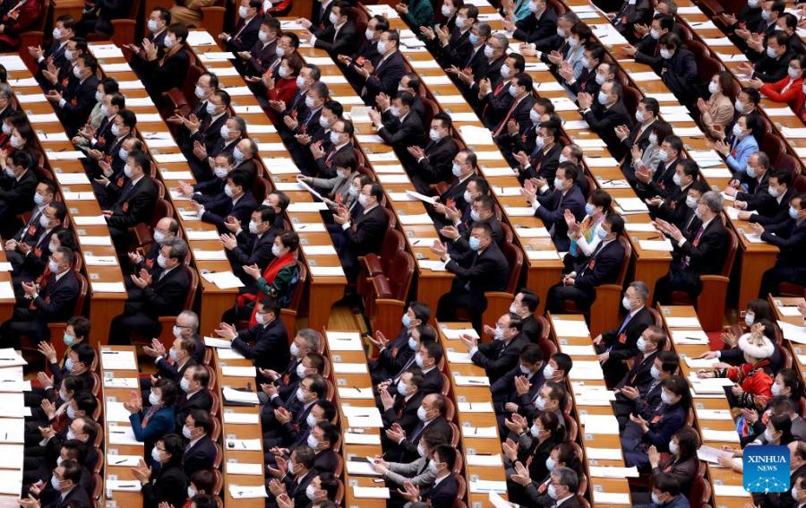 The second plenary meeting of the fifth session of the 13th National People's Congress (NPC) is held at the Great Hall of the People in Beijing, capital of China, March 8, 2022. (Xinhua/Xing Guangli)