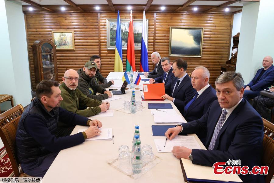 Photo taken on March 7, 2022 shows a view of the third round of talks between Russian and Ukrainian delegations at the Belovezhskaya Pushcha. (Photo/Agencies)