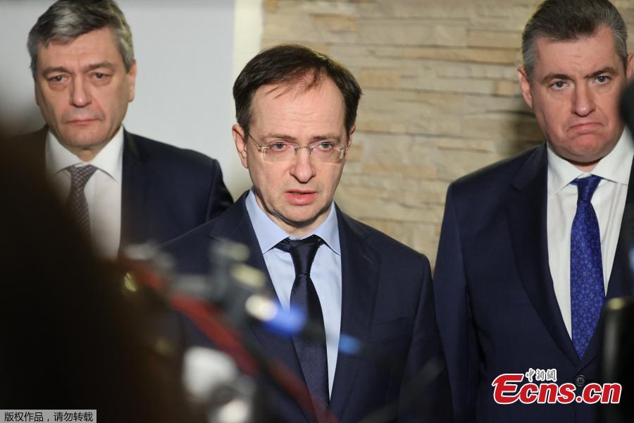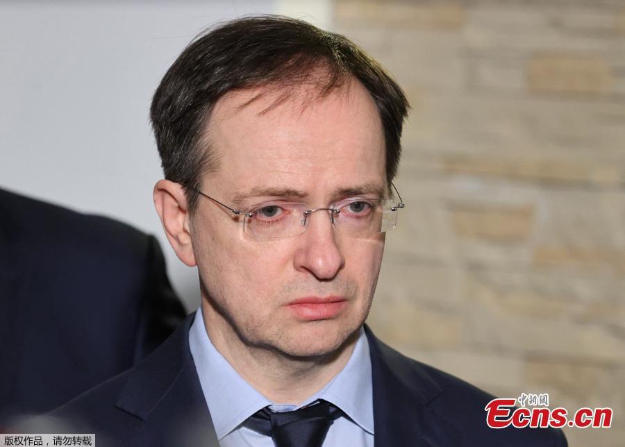 Head of the Russian delegation speaks to media before the talks, at the Belovezhskaya Pushcha, March 7, 2022. (Photo/Agencies)