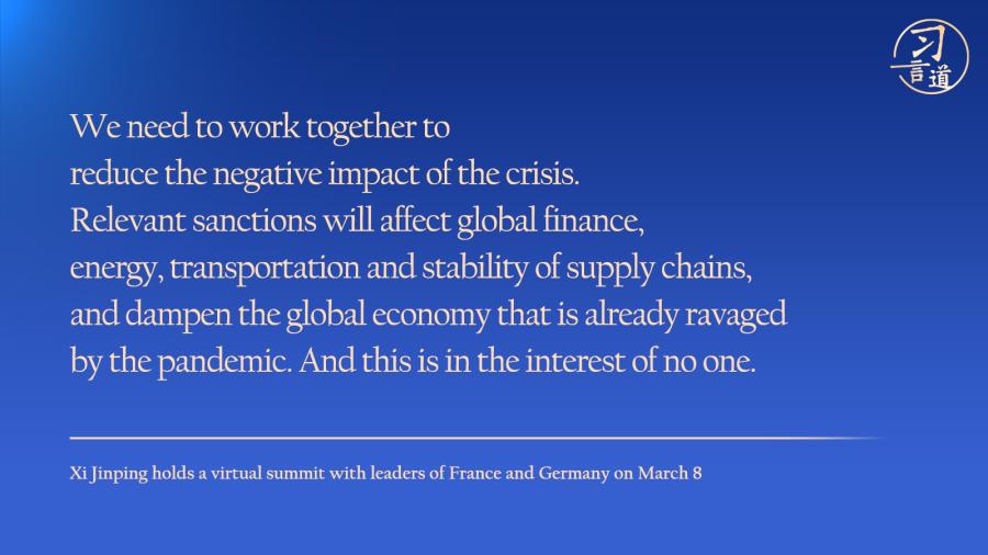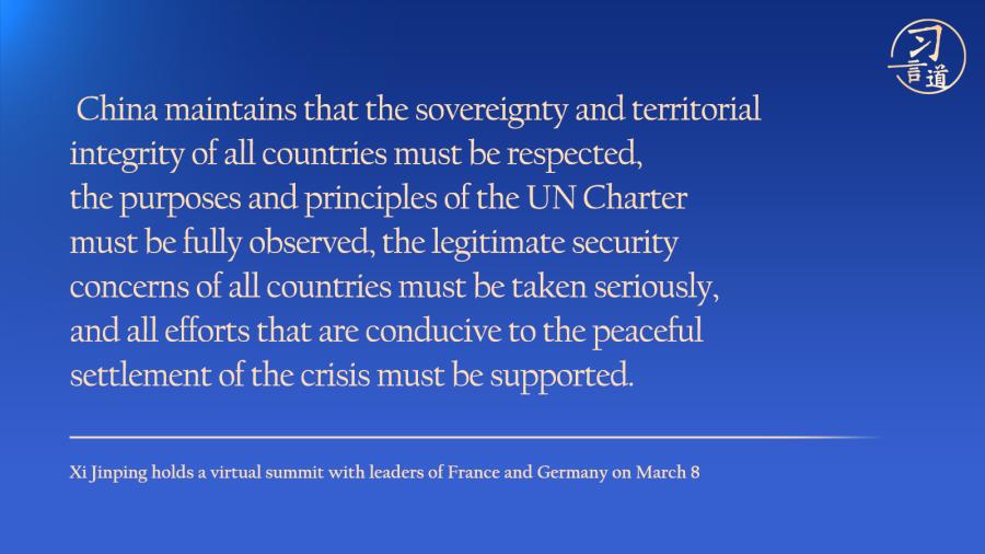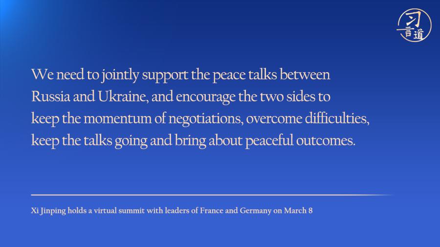 Chinese President Xi Jinping on Tuesday urged joint support for the peace talks between Russia and Ukraine, and stressed the need to encourage the two sides to keep the momentum of negotiations, overcome difficulties, keep the talks going and bring about peaceful outcomes.