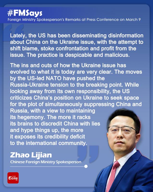 US’s practice of disseminating disinformation about China on the Ukraine issue is despicable and malicious