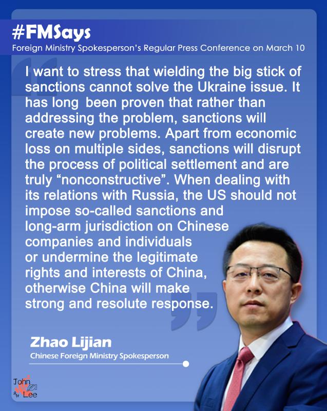 U.S. urged not to harm China's legitimate interests in handling ties with Russia