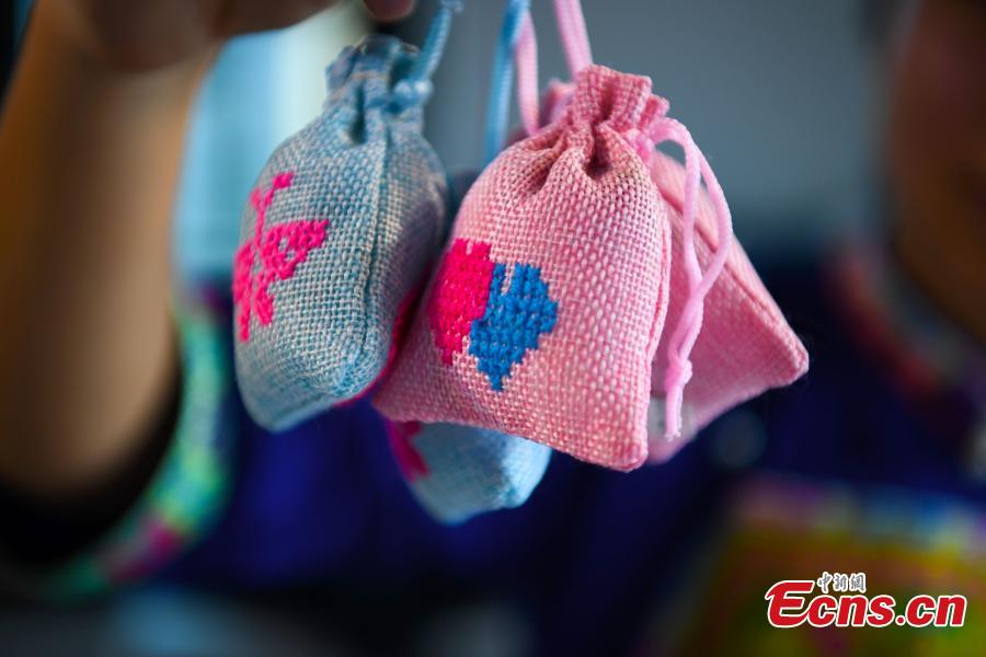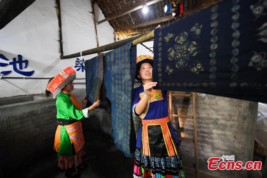 Batik art works are seen at Gulin County, Luzhou City, Sichuan Province. (Photo: China News Service/Liu Chuanfu)