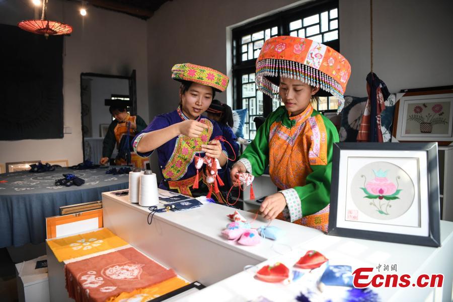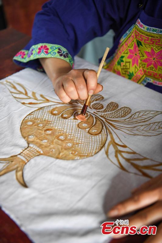 Villagers draw batik patterns at a workshop in Gulin County, Luzhou City, Sichuan Province. Batik, a craft inherited through generations among the Miao ethnic group has a history of more than 2,000 years. (Photo: China News Service/Liu Chuanfu)