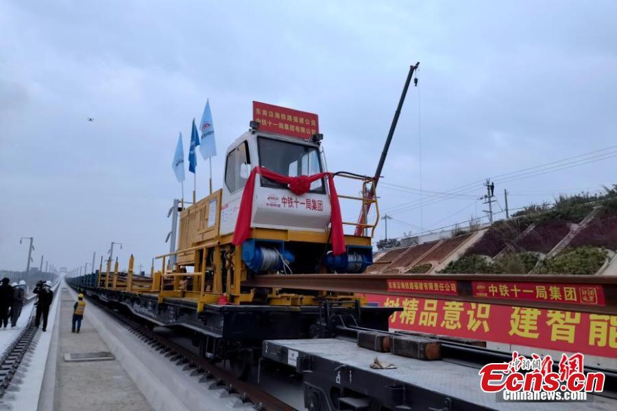 The track laying work started on Thursday. The Fuzhou-Xiamen high-speed railway, with a length of 277.42 kilometers and a designed speed of 350 km per hour, is expected to be the first cross-sea railway for bullet trains in China.