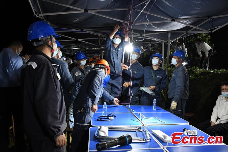 Photo shows staff members setting up temporary lighting in Tengxian county, South China's Guangxi Zhuang Autonomous Region on March 21, 2022. (Photo: China News Service/He Huawen)