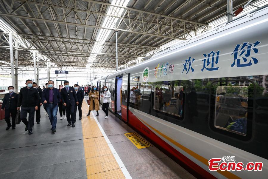 Passengers board the train at Guiyang railway station, March 30, 2022. (Photo: China New Service/Qu Honglun)