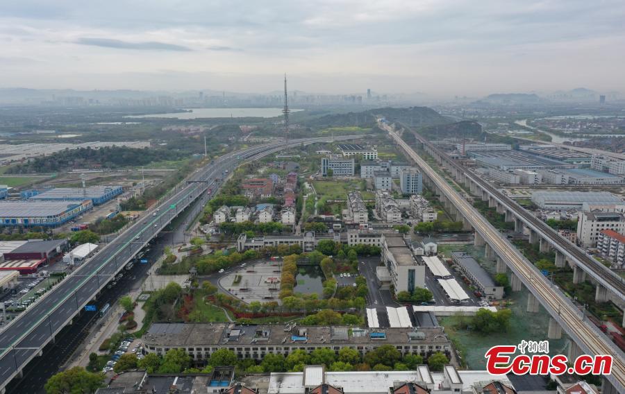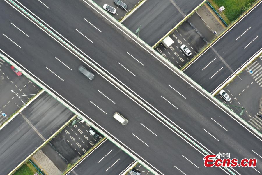 Drone photo shows a view of Yuyue superhighway in Shaoxing, Zhejiang Province, March 30, 2022. (Photo: China News Serive/Wang Gang)
