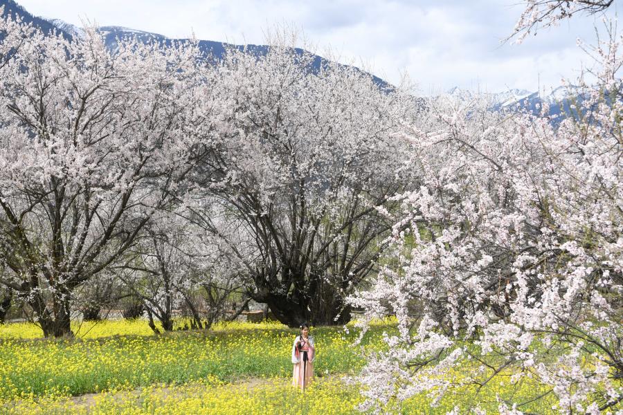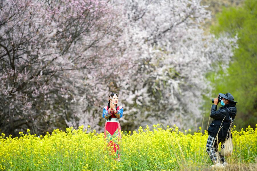 Drone photo shows picturesque view of peach blossoms in Nyingchi, southwest China's Tibet Autonomous Region, March 30, 2022. (Photo/China News Service)