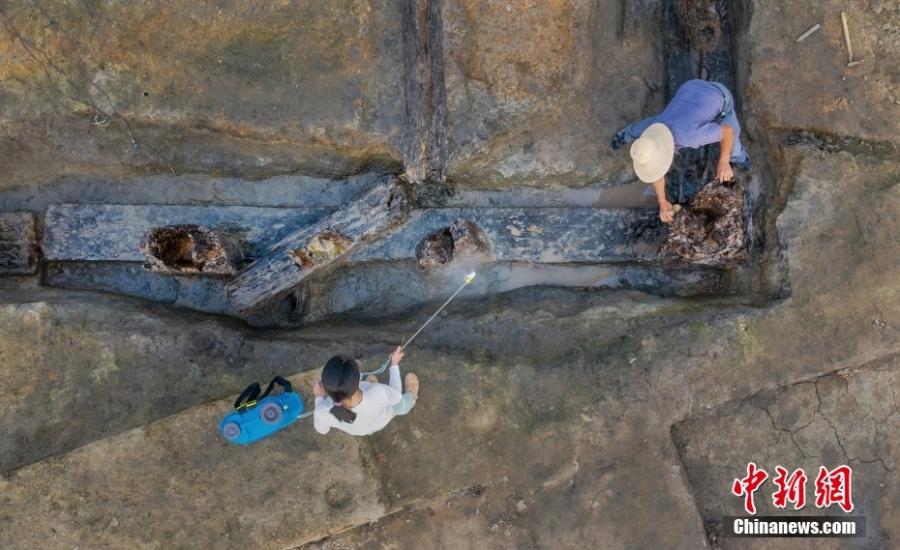 After four rounds of excavation, the remains of a large wooden structure in the western part of the site were revealed, with a total area of more than 600 square meters. This is the clearest structure and the most complete preservation of prehistoric wooden structure found in China, dating back to about 4,700 years ago. (Photo/VCG)