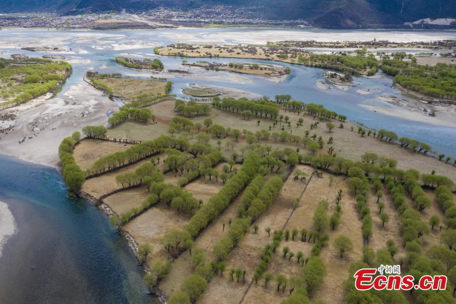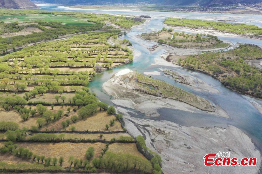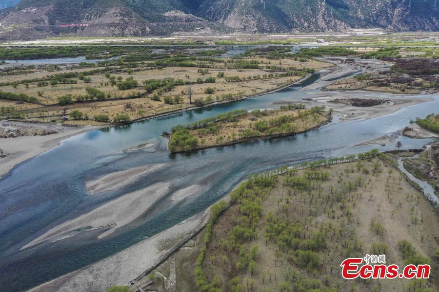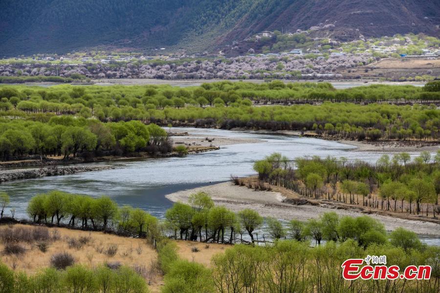 Spring scenery at Yani National Wetland Park in Nyingchi, southwest China's Tibet Autonomous Region. March 31, 2022. The Nyang River is one of the major tributaries of the Yarlung Zangbo River. (Photo/China News Service)