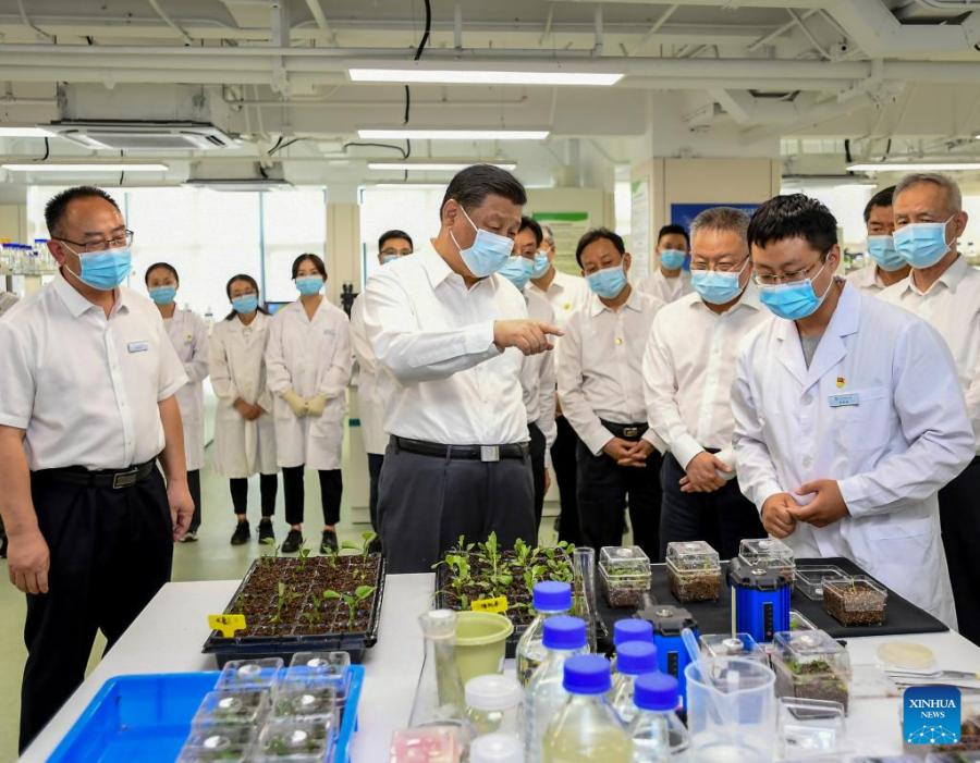 Chinese President Xi Jinping, also general secretary of the Communist Party of China Central Committee and chairman of the Central Military Commission, visits a seed laboratory to learn about seed industry innovation in Sanya, south China's Hainan Province, April 10, 2022. Xi on Sunday inspected the city of Sanya, south China's Hainan Province. (Xinhua/Li Xueren)