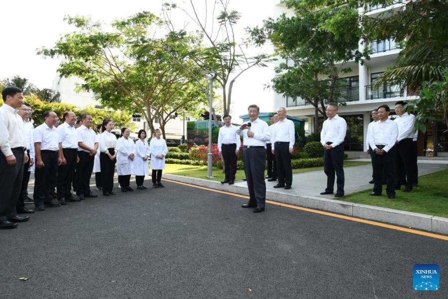 Chinese President Xi Jinping, also general secretary of the Communist Party of China Central Committee and chairman of the Central Military Commission, visits a seed laboratory to learn about seed industry innovation in Sanya, south China's Hainan Province, April 10, 2022. Xi on Sunday inspected the city of Sanya, south China's Hainan Province. (Xinhua/Xie Huanchi)