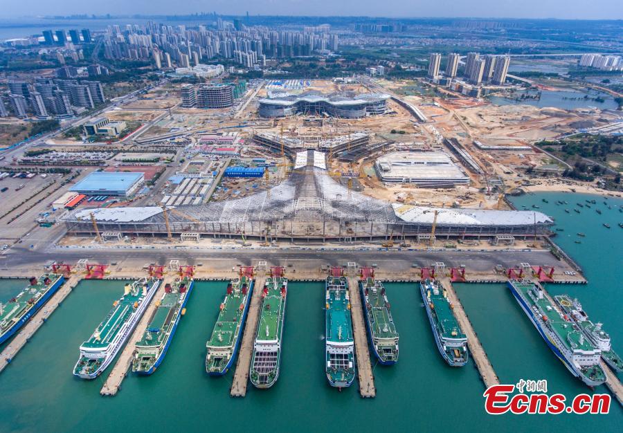 Aerial photo taken on March 25, 2022 shows the construction site of a passenger transportation station at the Xinhai Port in Haikou, south China's Hainan Province. The completion of this project will help improve the service level of the Xinhai Port in Haikou. (Photo: China News Service/Luo Yunfei)