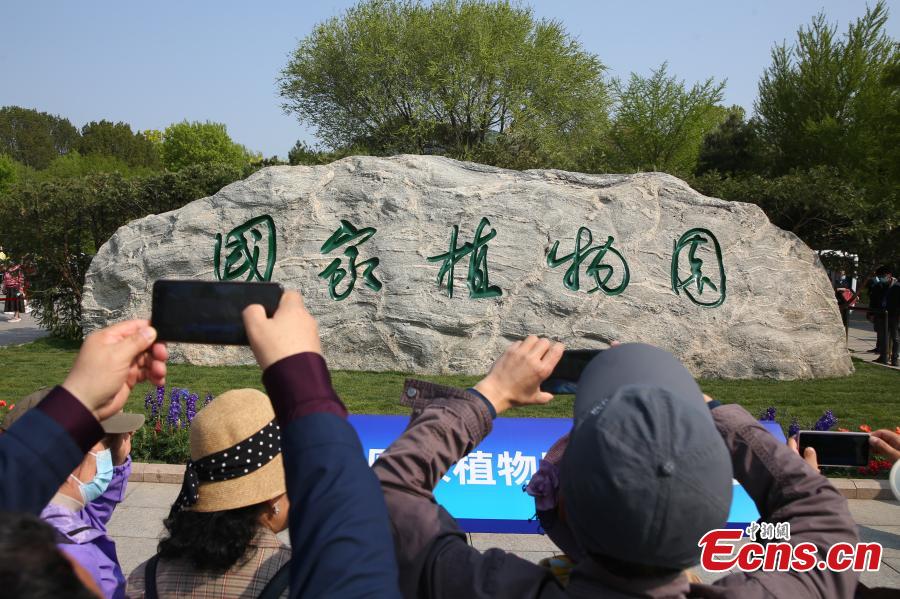 People visit the China National Botanical Garden in Beijing, capital of China, April 18, 2022. The China National Botanical Garden was officially inaugurated in Beijing on Monday. (Photo: China News Serivce/Yi Haifei)